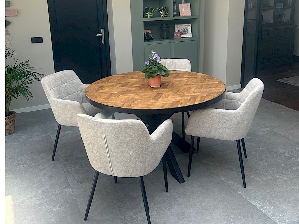 Eettafel rond 130 gerecycled teak visgraatlook