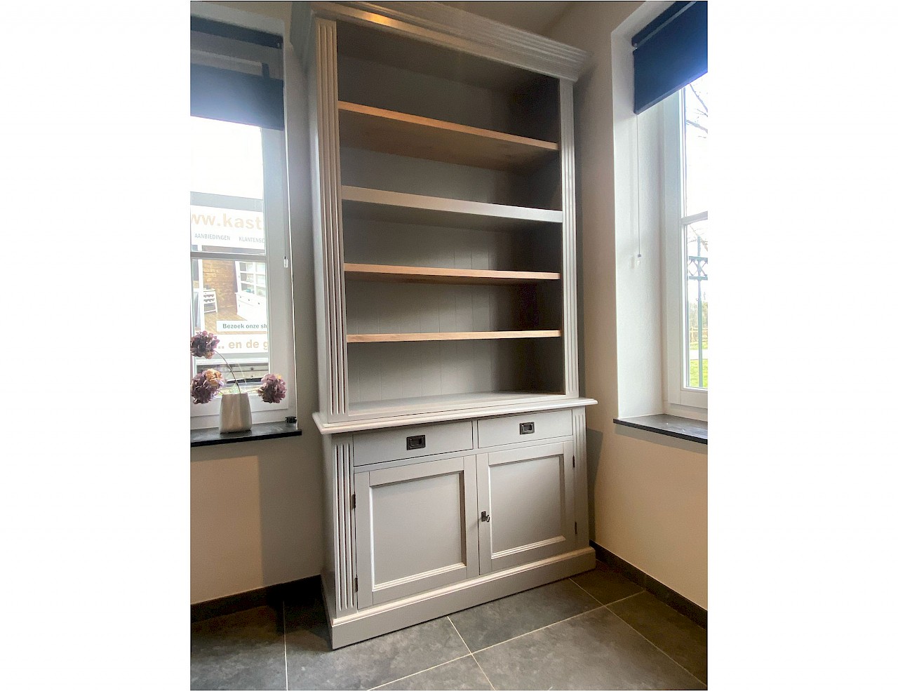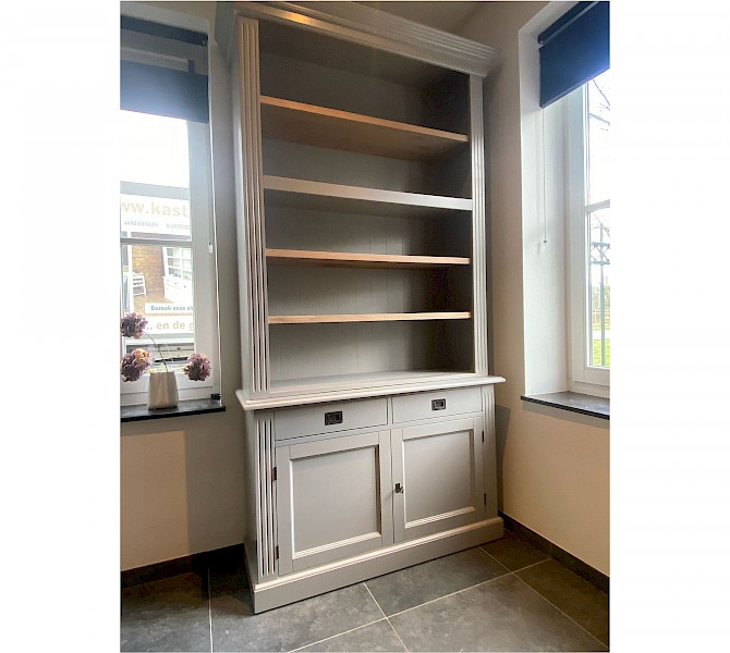 Die Schubladen laufen gedämpft und das Bücherregal selbst besteht aus 2 Teilen.