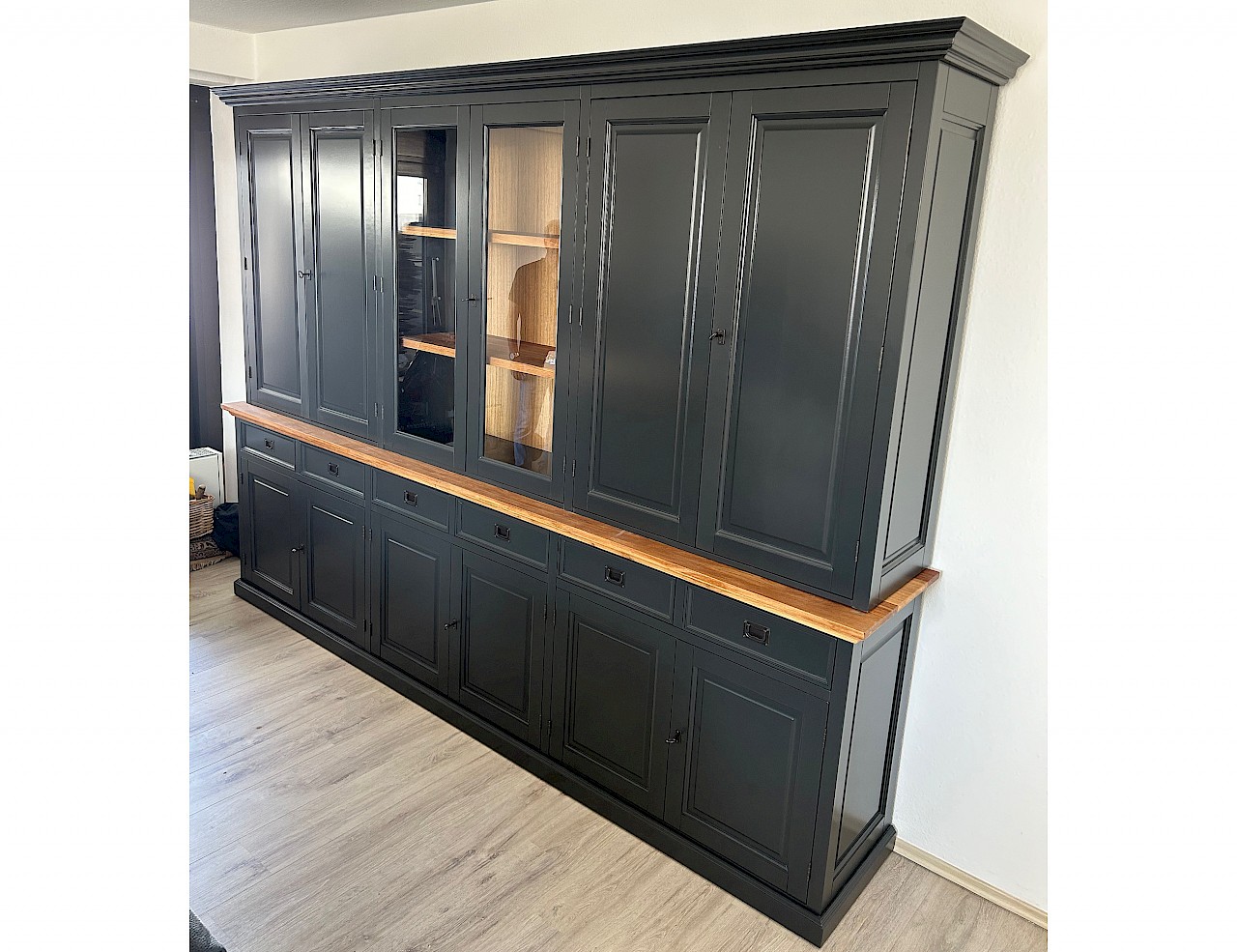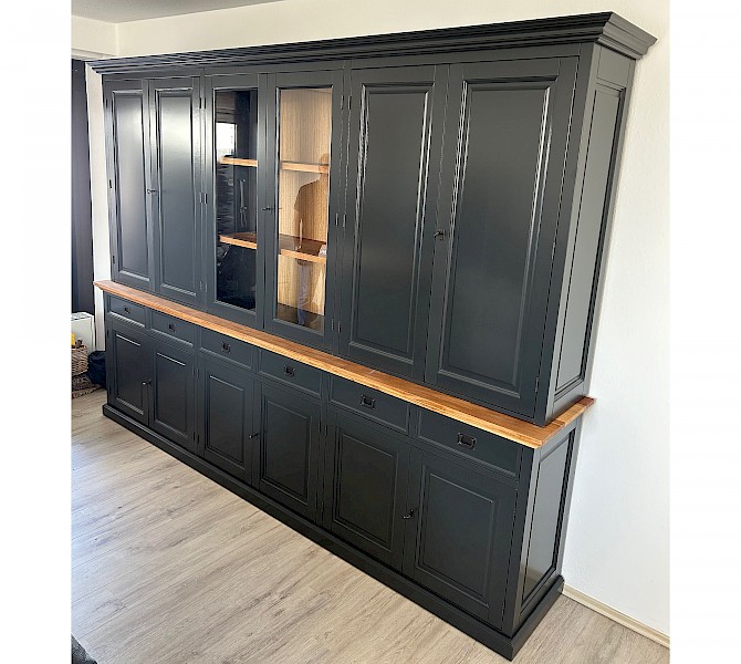 Dies ist ein fantastisch großes Sideboard mit einer Breite von nicht weniger als 300 cm. Unter anderem aufgrund der Tiefe der Unter- und Oberschränke steht Ihnen viel Stauraum zur Verfügung.