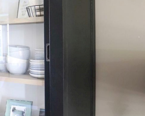 Die Schiebetüren hängen in Aluminiumschienen, gleiten sanft und schweben sozusagen auf den Schubladen, Softclosing ist eingebaut, also wirklich Luxus.