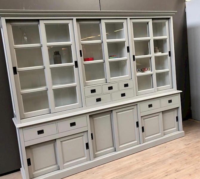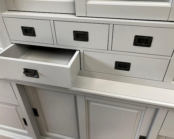 Dieser MIRA Buffetschrank ist ein stimmungsvoller, rustikaler Buffetschrank. Das Gehäuse hat eine hochwertige Verarbeitung, die sich durch eine luxuriöse Abdeckung der Schubladen und Eisenbügel auszeichnet, die die Türen sozusagen schweben lassen. Die festen Griffe sind sowohl in Bronze als auch in Aluminium erhältlich. Die Regaltiefe über 34,5cm und unter sogar 42,5cm, also viel Stauraum in diesem schönen Schrank!