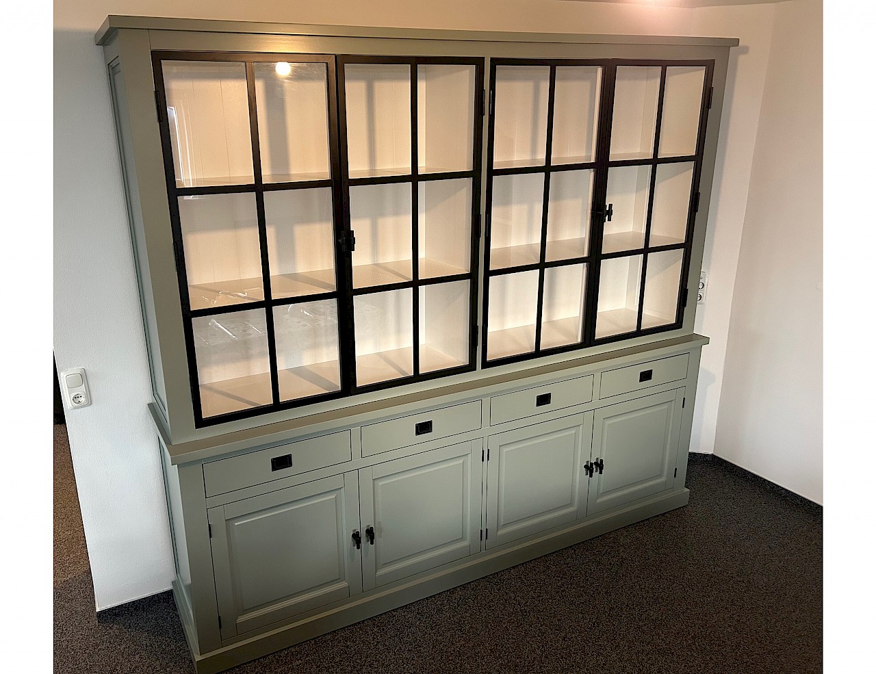 Buffetschrank mit Metalltüren. Die induktive Optik durch den Einsatz von 4 Metalltüren wurde erreicht, die schlichte Optik bleibt!
