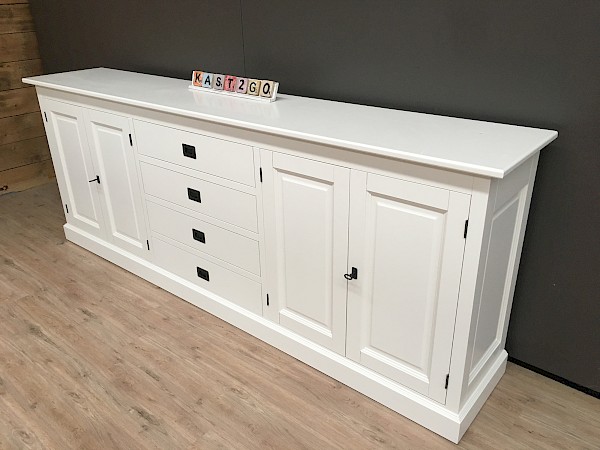 Dieses Sideboard ist 240 breit und hat ein elegantes Aussehen. Anstelle von Weiß kann dieses Sideboard auch in allen anderen RAL-Farben lackiert werden. Auch in dieser Linie in einem Schrank, TV-Schrank oder Couchtisch zu verkaufen, schauen Sie weiter auf unserer Website und finden Sie die richtige Kombination.