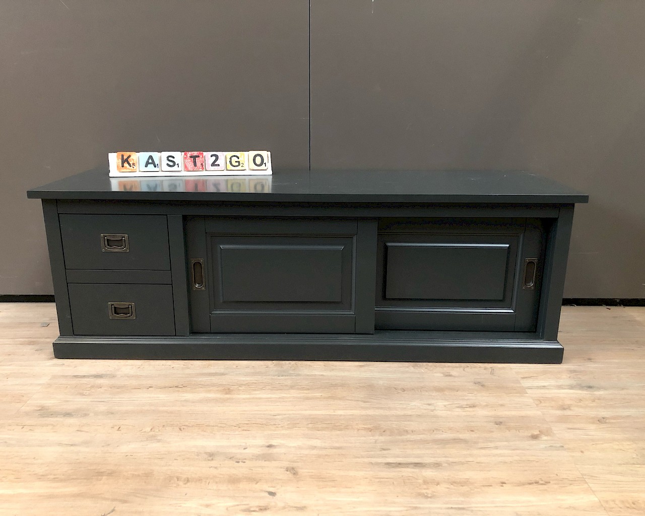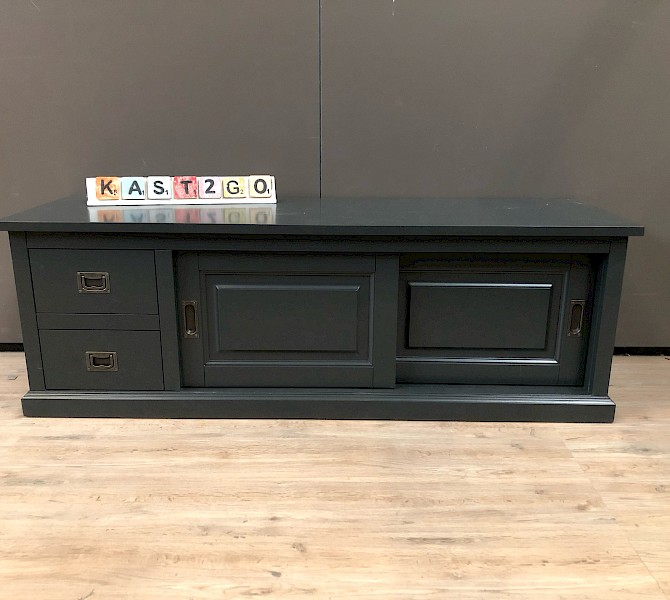 Sanft gespritzte TV-Möbel in ganz Weiß mit 2 Schiebetüren und 2 Schubladen zum sanften Schließen!