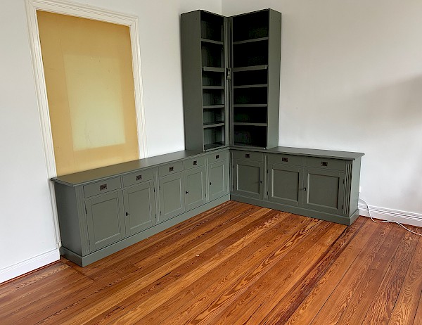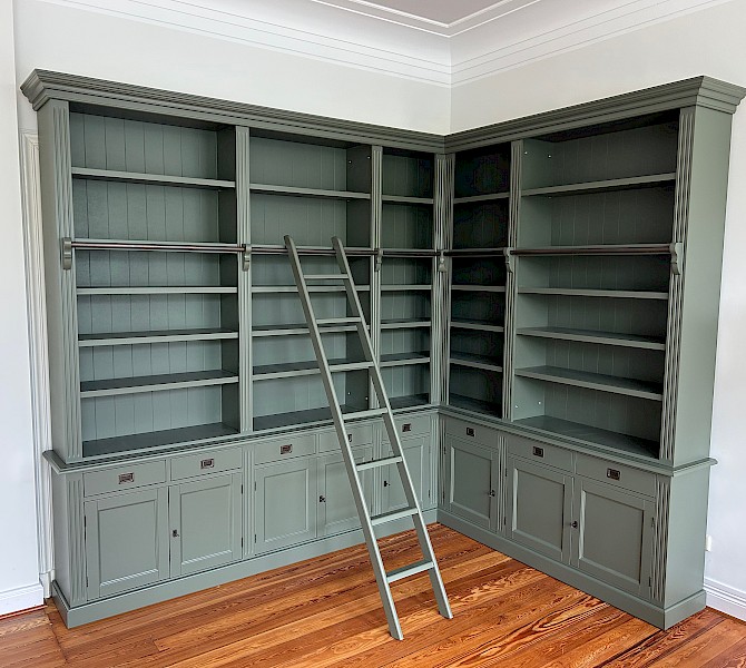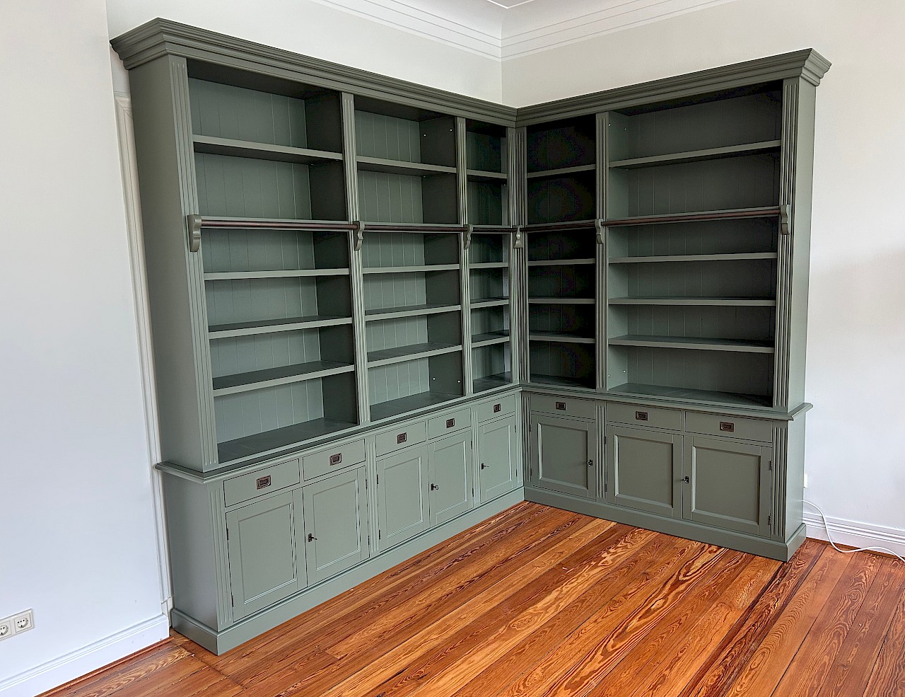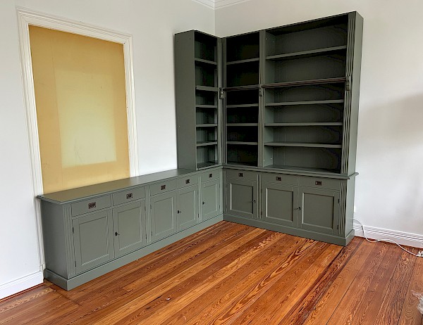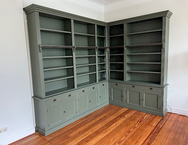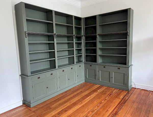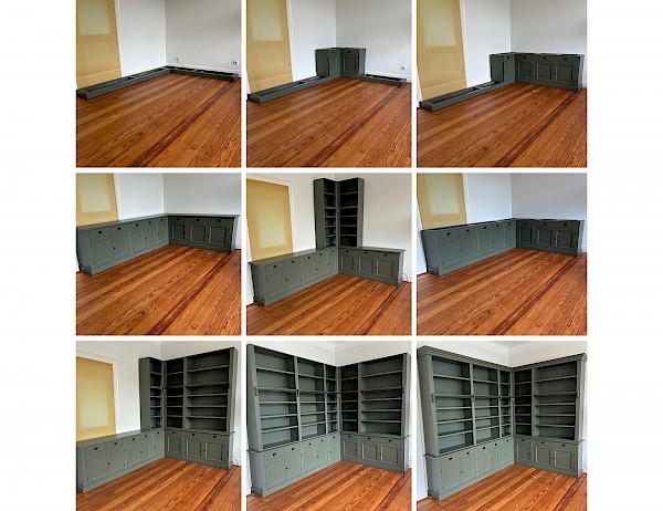 De boekenkast Janine is ook in een hoekopstelling mogelijk, waarbij u natuurlijk zelf uw eigen maatvoering kunt aangeven. Dus de breedte en de hoogte die u zoekt, maken wij voor u! Uiteraard kunt u ook uw eigen RAL-kleur kiezen, eventueel zelfs in combinatie met eiken elementen. Deze hoekopstelling bestaat uit meerder opbouwdelen, zodat de kast ook daadwerkelijk is te transporteren en op een verantwoorde wijze is op te boewen door onze vakkundige collega's.