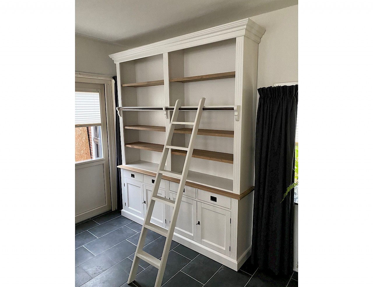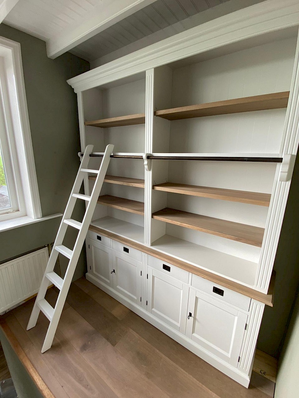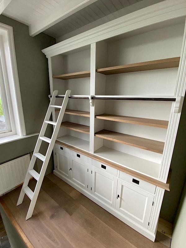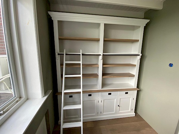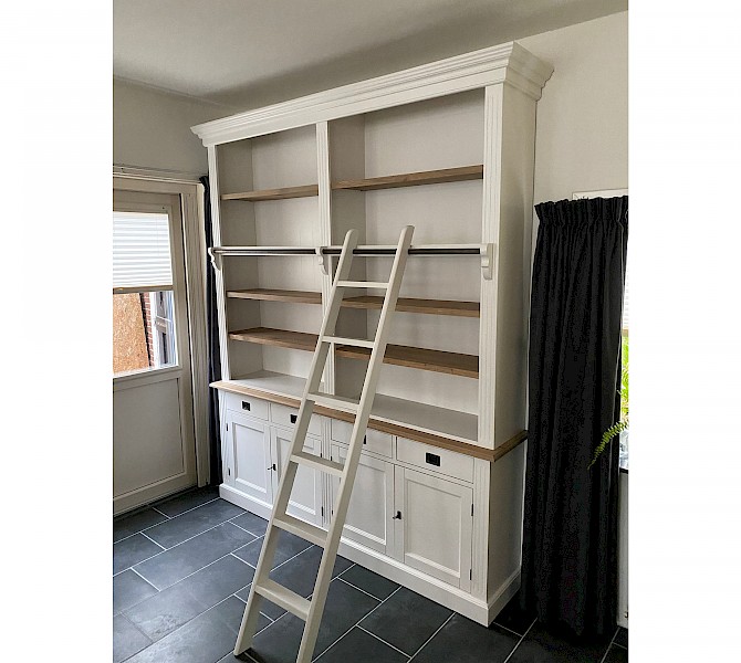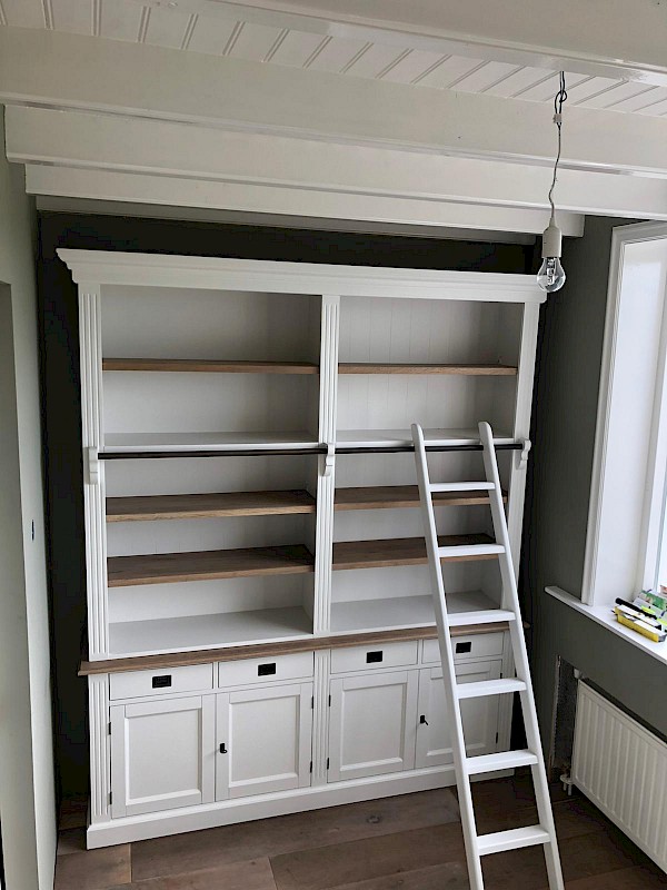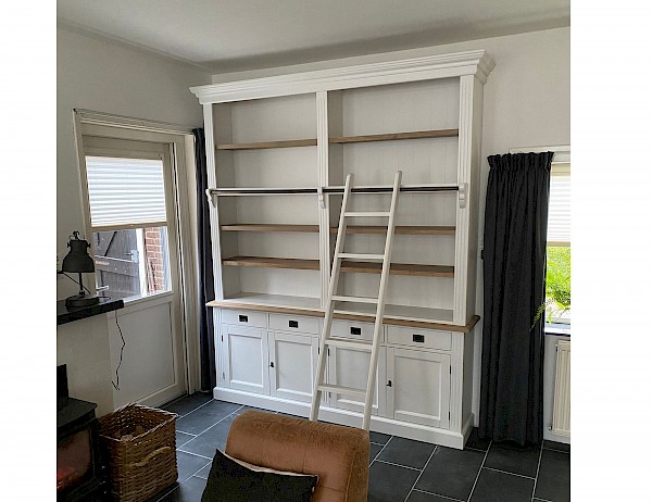 Leuke boekenkast van 200cm breed met ladder en met 4 legplanken, dus voldoende afzetruimte voor boeken!