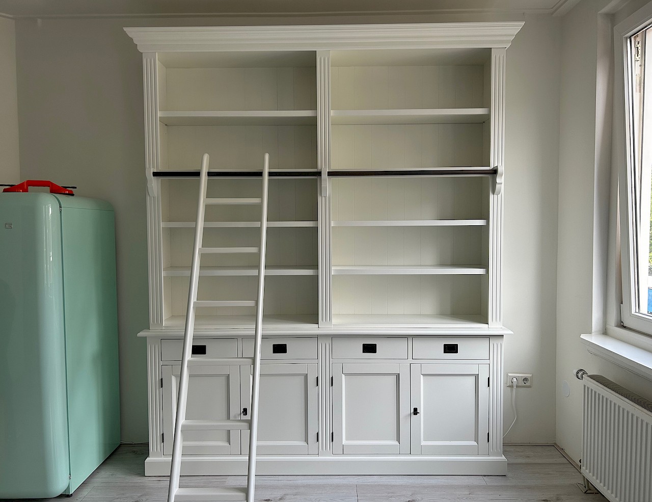 Leuke boekenkast van 200cm breed met ladder en met 4 legplanken, dus voldoende afzetruimte voor boeken!