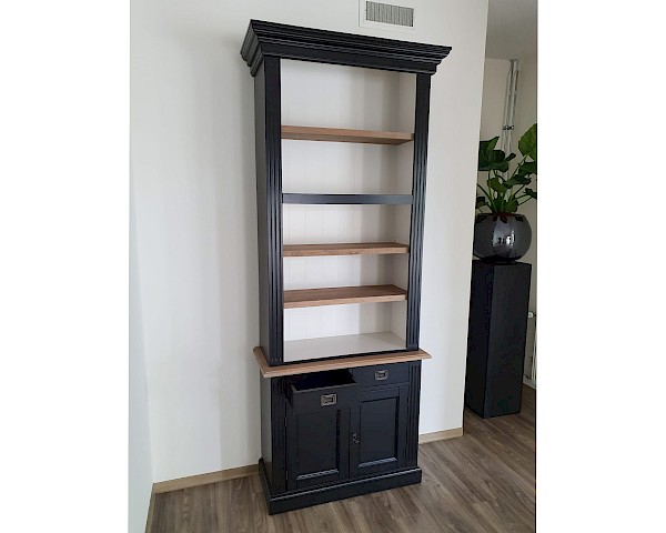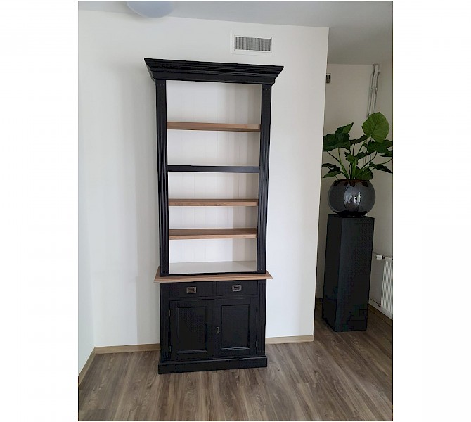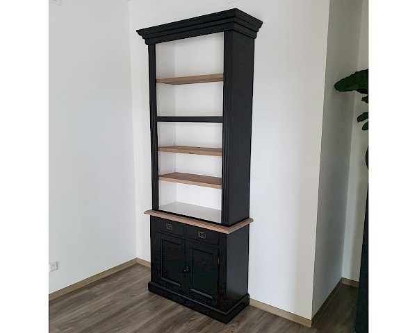 De lades lopen op softclosing en de boekenkast bestaat zelf uit 2 gedeeltes.
