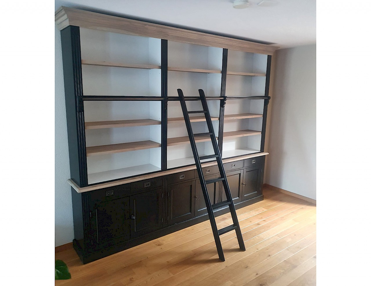 Boekenkast Janine Zwart/Wit/Eiken 300 (incl. eiken koof)
