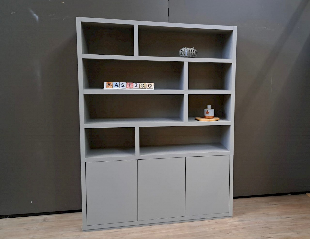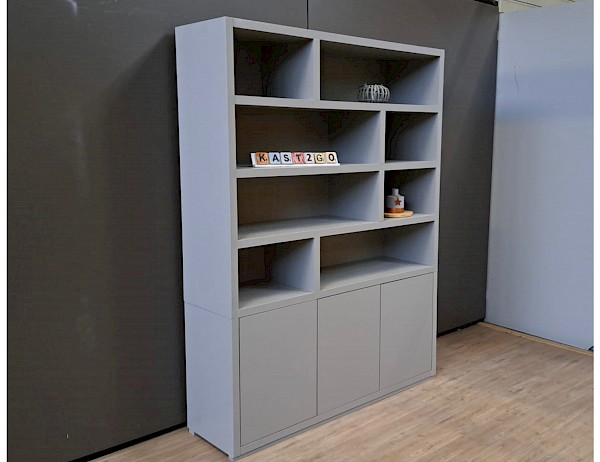 In het gesloten onderstuk kunt u veel spullen uit het zicht opbergen, terwijl in het open bovenstuk ook diverse persoonlijke spullen stijlvol geëtaleerd kunnen worden. Voor ieder wat wils! Vanzelfsprekend is deze kast ook in andere afmetingen en alle andere RAL-kleuren verkrijgbaar.
