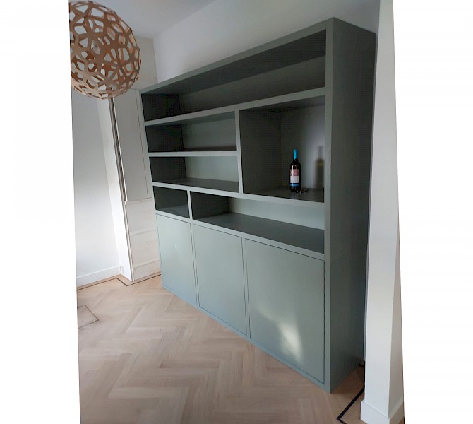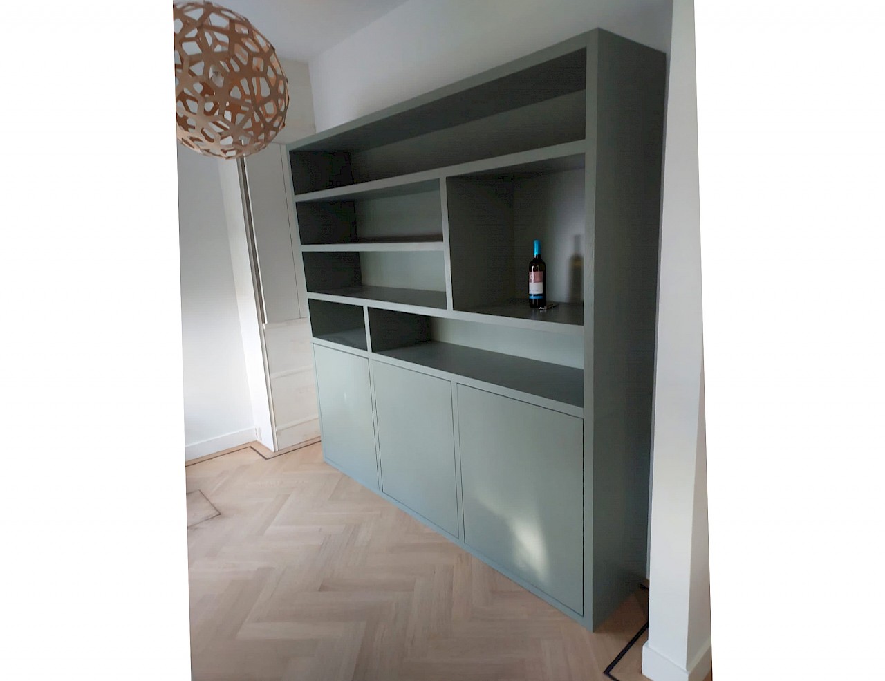 In het gesloten onderstuk kunt u veel spullen uit het zicht opbergen, terwijl in het open bovenstuk ook diverse persoonlijke spullen stijlvol geëtaleerd kunnen worden. Voor ieder wat wils! Vanzelfsprekend is deze kast ook in andere afmetingen en alle andere RAL-kleuren verkrijgbaar.