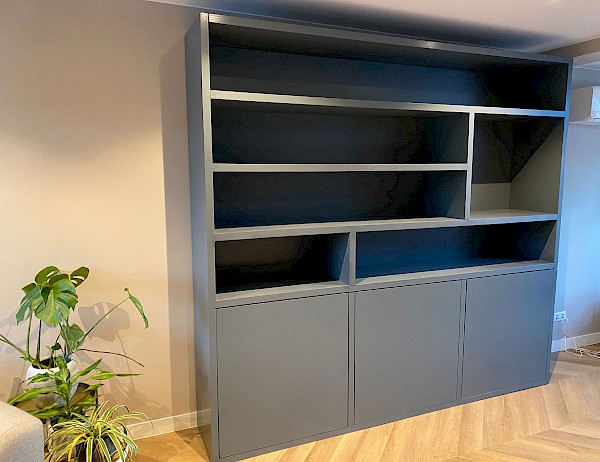 In het gesloten onderstuk kunt u veel spullen uit het zicht opbergen, terwijl in het open bovenstuk ook diverse persoonlijke spullen stijlvol geëtaleerd kunnen worden. Voor ieder wat wils! Vanzelfsprekend is deze kast ook in andere afmetingen en alle andere RAL-kleuren verkrijgbaar.