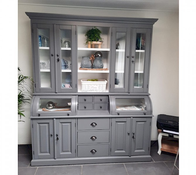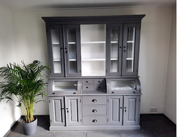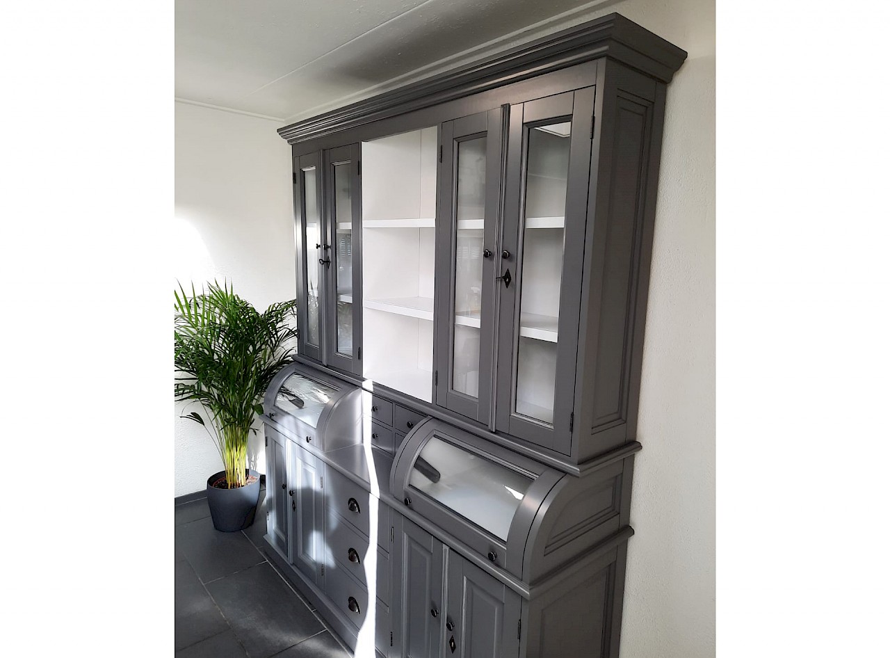 Deze prachtige buffetkast Bastiaan heeft een geweldige uitstraling. Uiteraard bestaat de kast uit 2 delen, het bovenste gedeelte valt achter een sierlijst in het onderste gedeelte. De afwerking is glad gespoten, en hoogwaardige kwaliteit: softclosing op de lades, en afsluitbare deuren!
