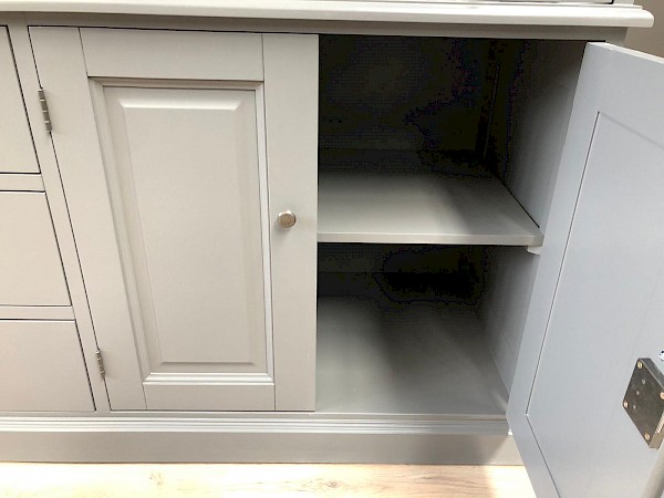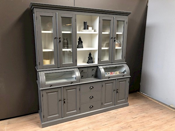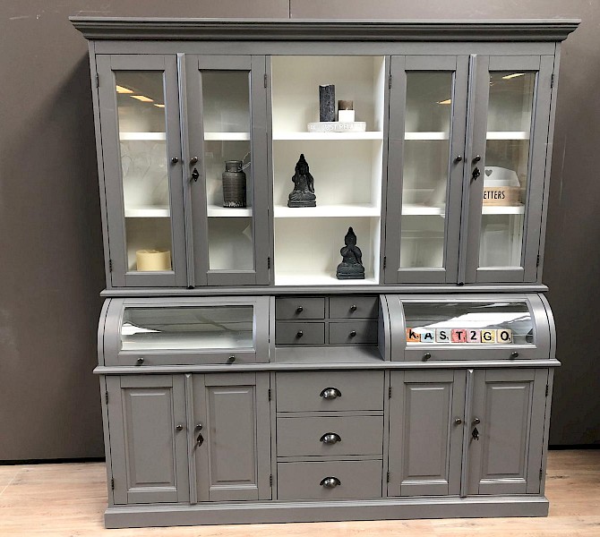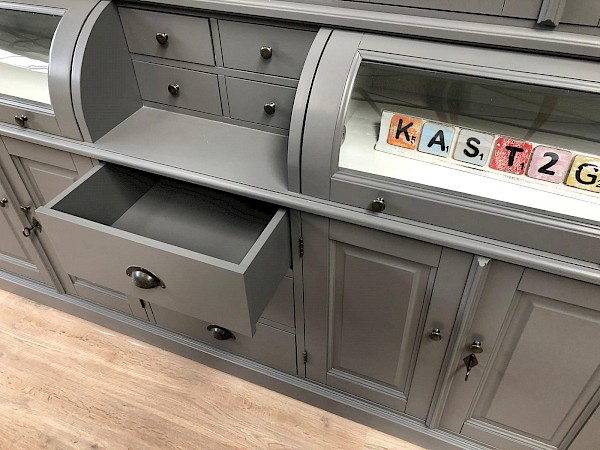 Deze prachtige buffetkast Bastiaan heeft een geweldige uitstraling. Uiteraard bestaat de kast uit 2 delen, het bovenste gedeelte valt achter een sierlijst in het onderste gedeelte. De afwerking is glad gespoten, en hoogwaardige kwaliteit: softclosing op de lades, en afsluitbare deuren!