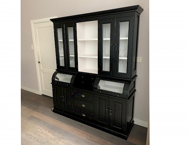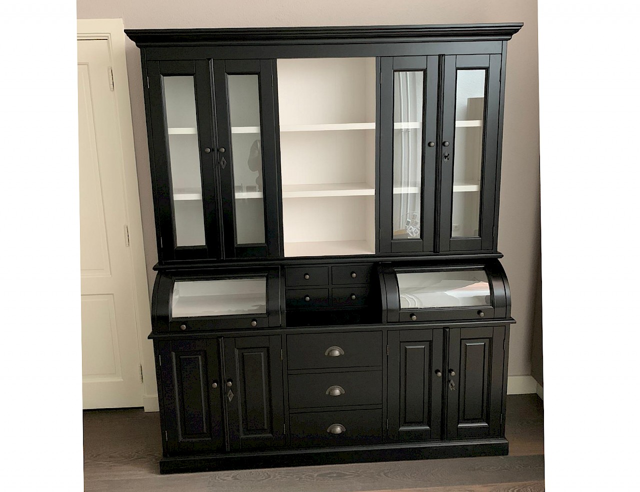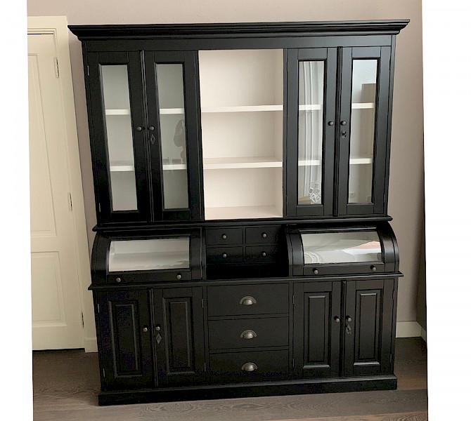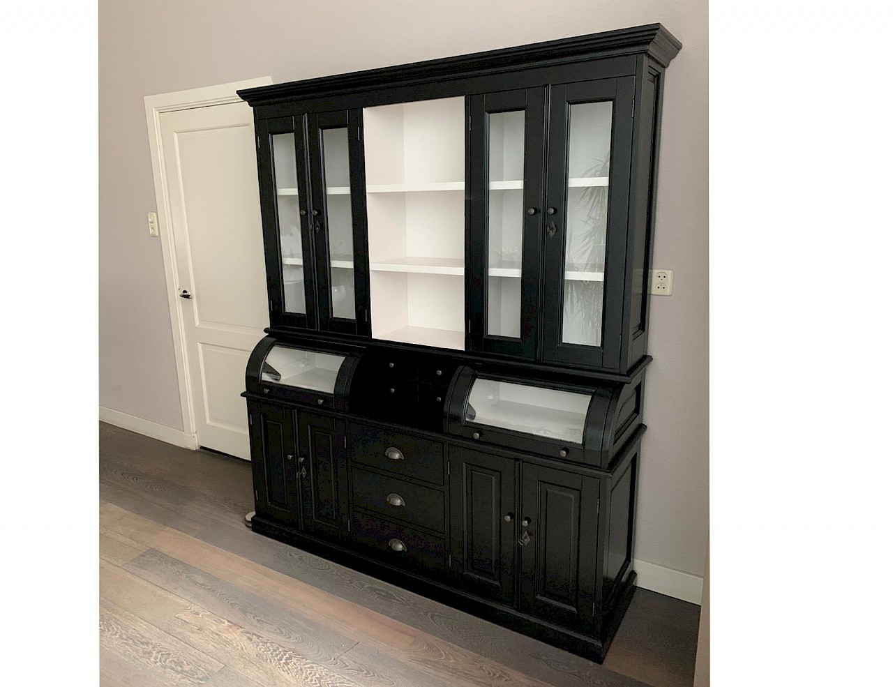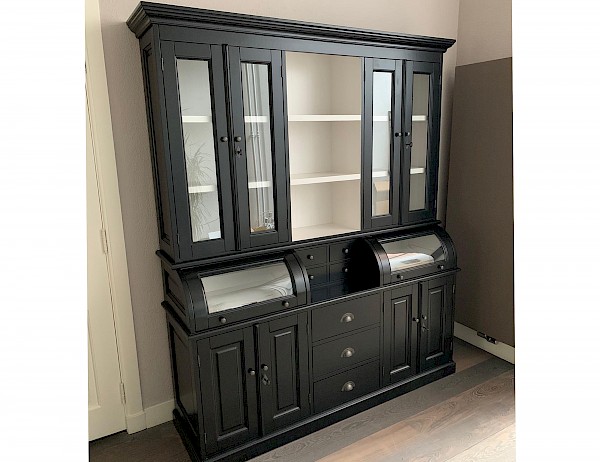 Deze prachtige buffetkast Bastiaan heeft een geweldige uitstraling. Uiteraard bestaat de kast uit 2 delen, het bovenste gedeelte valt achter een sierlijst in het onderste gedeelte. De afwerking is glad gespoten, en hoogwaardige kwaliteit: softclosing op de lades, en afsluitbare deuren!