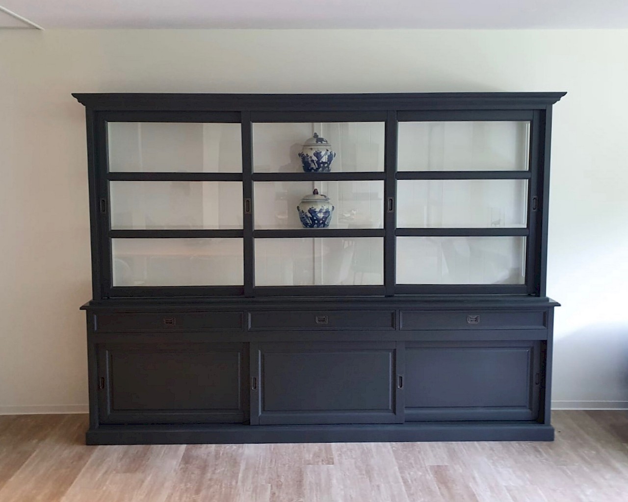De schuifdeuren hangen in aluminium rails, glijden vloeiend en zweven als het ware. Op de lades is soft closing geinstalleerd,dus echt die luxe.