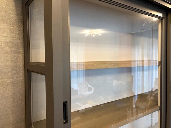 De schuifdeuren hangen in aluminium rails, glijden vloeiend en zweven als het ware. Op de lades is soft closing geinstalleerd,dus echt die luxe.