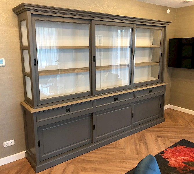 U kunt de buffetkast Degen ook in alle andere RAL-kleuren bestellen. U kiest de kleur die het beste bij uw interieur past. U kunt de buitenkant en de binnenkant van deze kast zelfs in verschillende kleuren maken. Deze kast is ook verkrijgbaar met een breedte van 160-180-200-220-240-260-280, zelfs groter dan 300cm is mogelijk