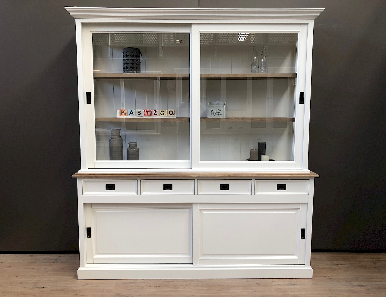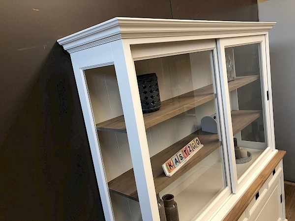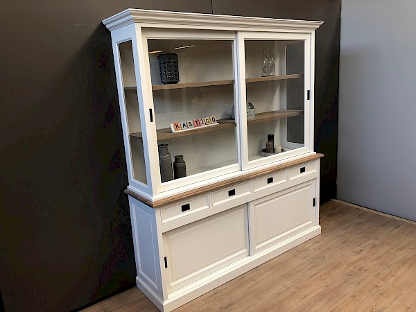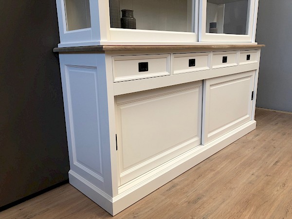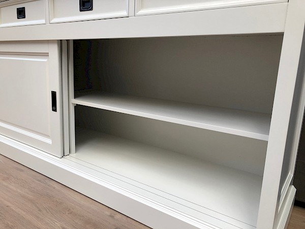 U kunt de buffetkast Degen ook in andere kleuren bestellen: grijs, zwart, murano, verona, antraciet of ral9001. U kiest de kleur die het beste bij uw interieur past. U kunt de buitenkant en de binnenkant van deze kast zelfs in verschillende kleuren maken. Deze kast is ook verkrijgbaar met een breedte van 160 cm en 180 cm.