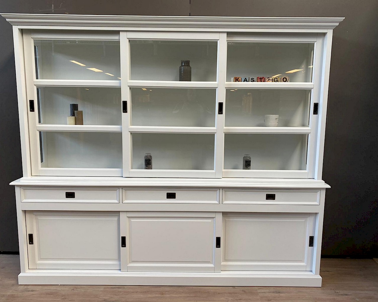 U kunt de buffetkast Degen ook in andere kleuren bestellen: grijs, zwart, murano, verona, antraciet of ral9001. U kiest de kleur die het beste bij uw interieur past. U kunt de buitenkant en de binnenkant van deze kast zelfs in verschillende kleuren maken. Deze kast is ook verkrijgbaar met een breedte van 160-180-200-220-240-280-300