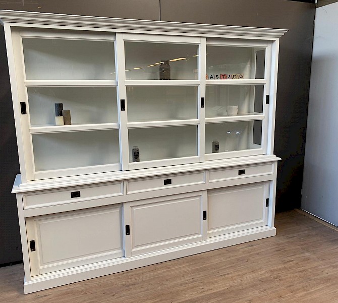 U kunt de buffetkast Degen ook in andere kleuren bestellen: grijs, zwart, murano, verona, antraciet of ral9001. U kiest de kleur die het beste bij uw interieur past. U kunt de buitenkant en de binnenkant van deze kast zelfs in verschillende kleuren maken. Deze kast is ook verkrijgbaar met een breedte van 160-180-200-220-240-260-300