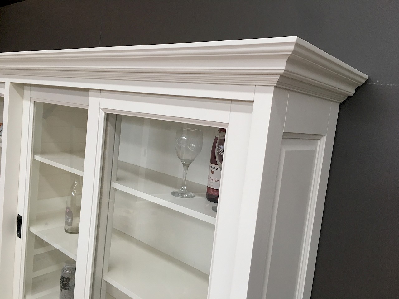 Deze aantrekkelijke glad gespoten kast biedt veel opbergruimte voor items die je onzichtbaar zou willen in de onderkast, en je kunt je persoonlijke bezittingen weergeven in het glazen gedeelte van de buffetkast.