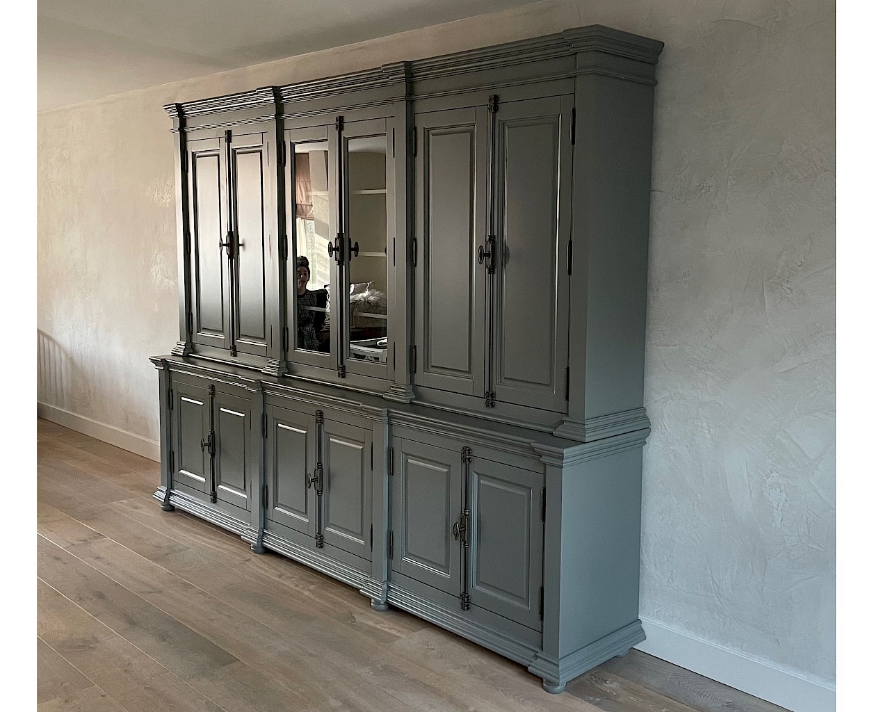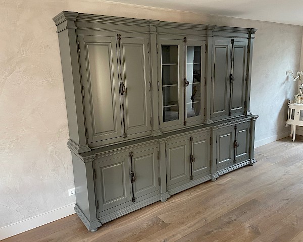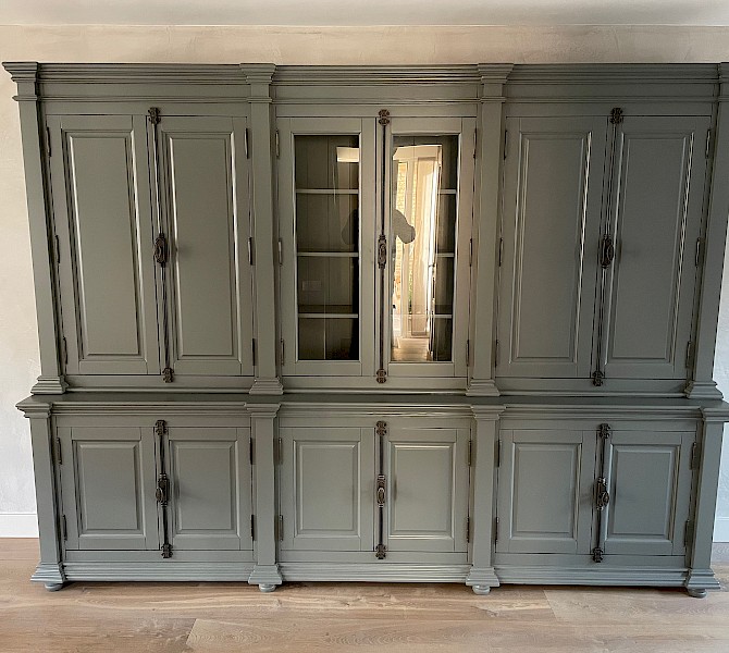 De afwerking is glad gespoten, en hoogwaardige kwaliteit: softclosing op de lades, en afsluitbare deuren dmv espagnoletsluitingen.