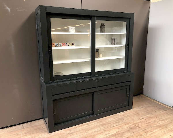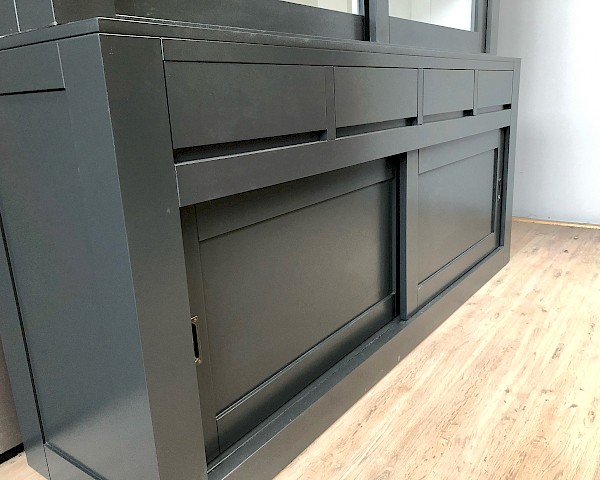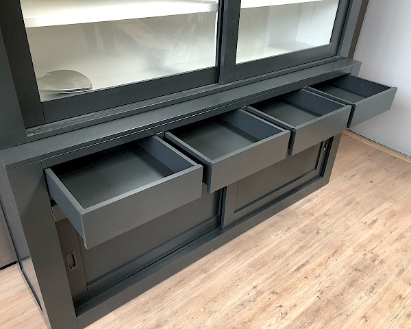 U kunt de buffetkast Mees ook in alle andere RAL-kleuren bestellen. U kiest de kleur die het beste bij uw interieur past. U kunt de buitenkant en de binnenkant van deze kast zelfs in verschillende kleuren maken. Deze kast is ook verkrijgbaar met een breedte van 160 cm, 180 of zelfs groter dan 200cm, bijv 220 of 240cm.