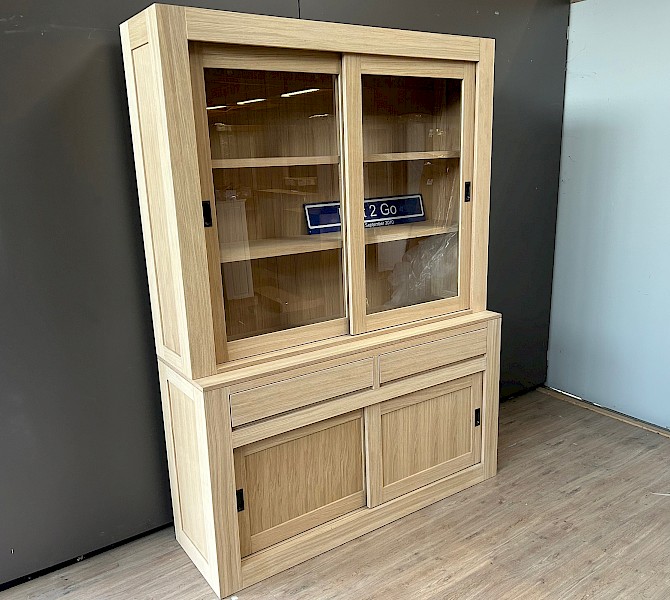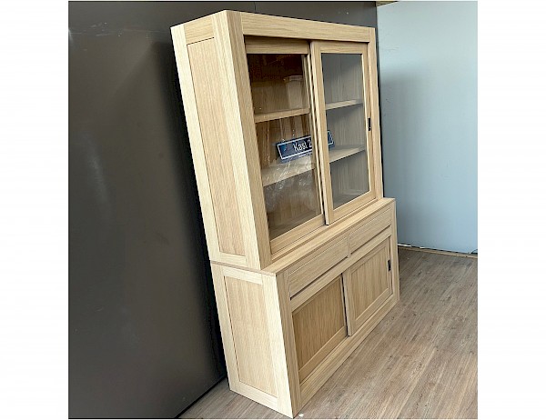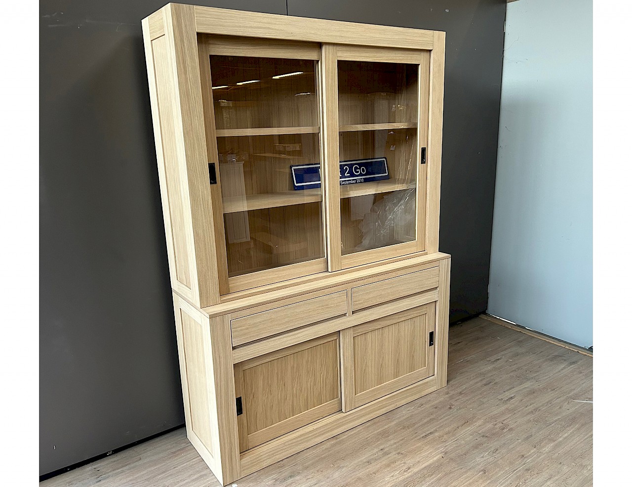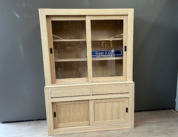 Deze strakke buffetkast is combinatie met massief eiken en eiken vineer uitgevoerd, kwalitatief hoogwaardig afgewerkt, dat echt een massieve uitstraling heeft. Uiteraard bestaat de kast uit 2 gedeeltes en daardoor makkelijk in vervoer. Dit model Mees is ook in andere afmetingen verkrijgbaar, van 100cm tot 300cm breed. Ook in hoogtes kan gevarieerd worden van 180 naar 260cm. De onderkast is ook als losse dressoir te gebruiken. Er zijn ook andere varianten eiken verkrijgbaar, white wash eiken, grey wash eiken, donker eiken, etc... Vraag ons naar de mogelijkheden!