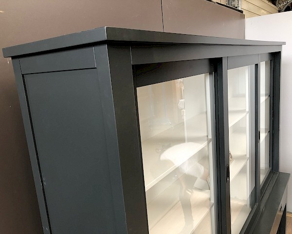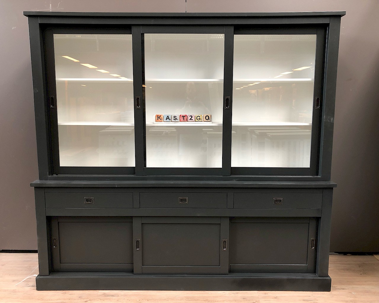 Deze aantrekkelijke glad gespoten kast melbourne in kleur antraciet/wit biedt veel opbergruimte voor items die je onzichtbaar zou willen in de onderkast, en je kunt je persoonlijke bezittingen weergeven in het glazen gedeelte van de buffetkast. De kast heeft een strakke koof