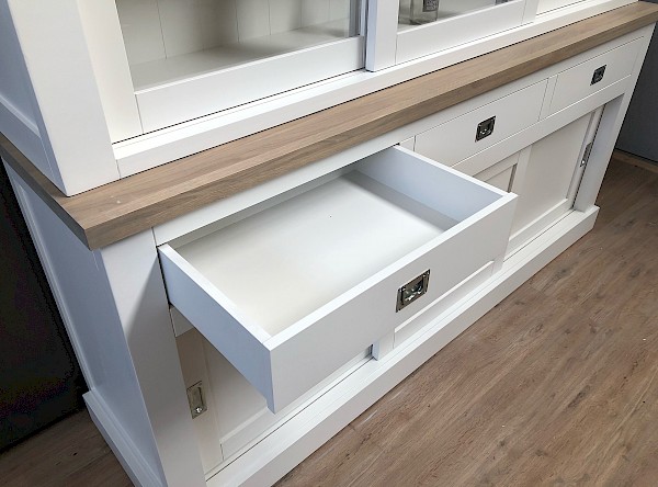 Een van de weinige buffetkasten ZONDER sierlijst,dit geeft een echt strakke uitstraling aan de kast.