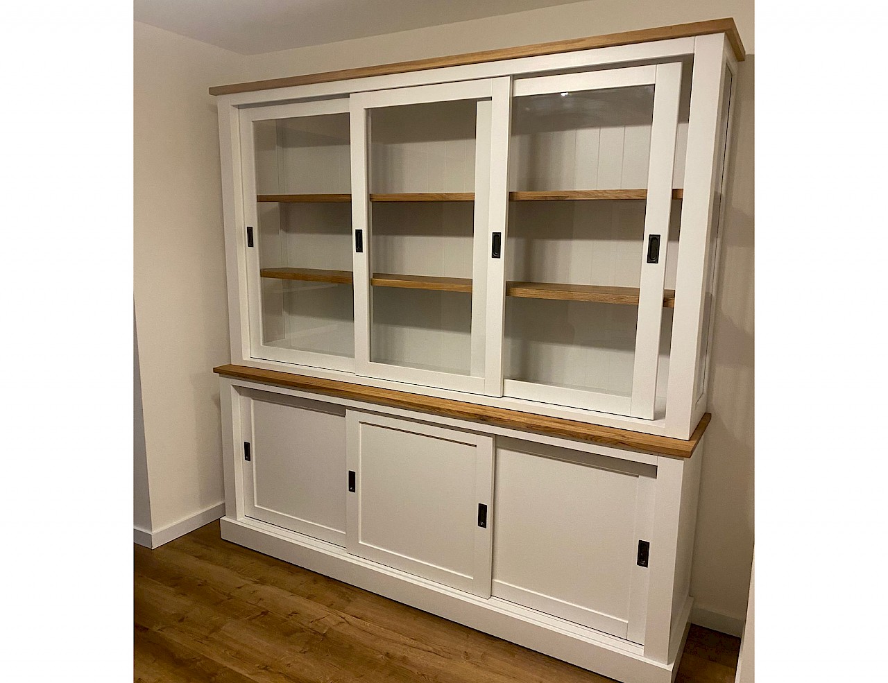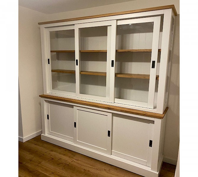 De schuifdeuren hangen in aluminium rails, glijden vloeiend en zweven als het ware.Op de lades is soft closing geinstalleerd,dus echt die luxe.
