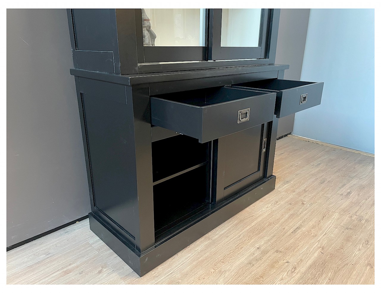 Deze aantrekkelijke glad gespoten kast melbourne in kleur zwart/wit biedt veel opbergruimte voor items die je onzichtbaar zou willen in de onderkast, en je kunt je persoonlijke bezittingen weergeven in het glazen gedeelte van de buffetkast. De kast heeft een strakke koof