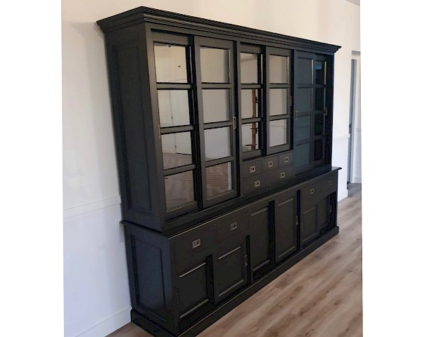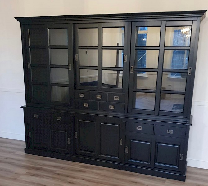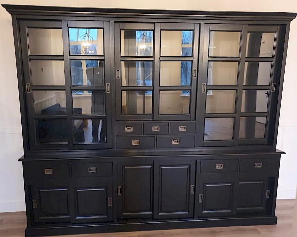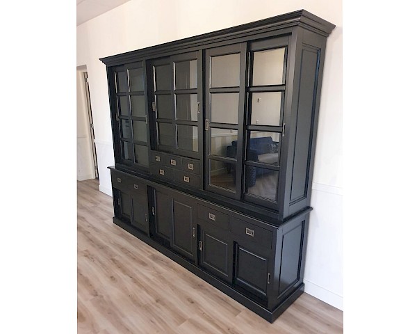 Deze buffetkast MIRA is een sfeervolle landelijke buffetkast. De kast heeft een hoogwaardige afwerking, kenmerkend door onder andere luxe soflclosing op de lades, ijzeren hangrails waardoor de deuren als het ware zweven. De strakke handgrepen zijn zowel in brons als in aluminium uitvoering verkrijgbaar. De plankdiepte boven is 34.5cm en onder zelfs 42.5cm, hierdoor een zee aan bergruimte in deze prachtige kast!