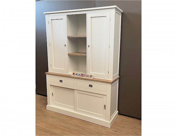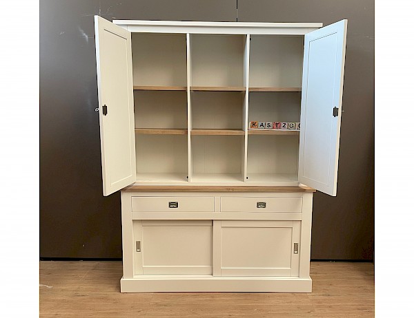 Veel opbergruimte die je onzichtbaar kunt opbergen in zowel onder- als bovenkast. Toch ook nog een open middenstuk om je mooiste spullen te etaleren.