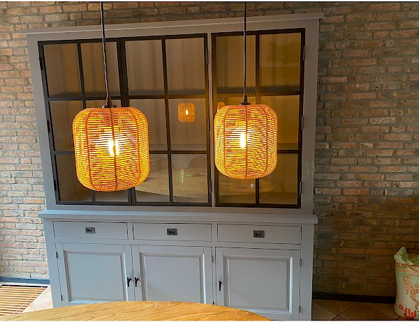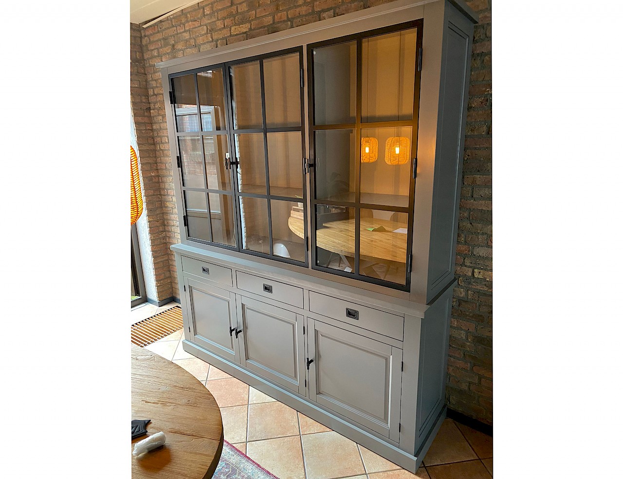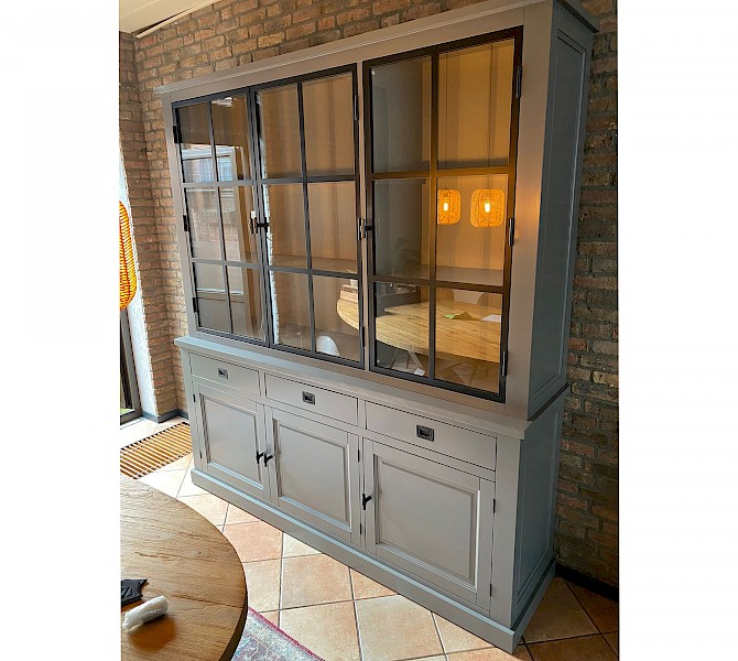 Buffetkast met metalen deuren. De inductriele look door gebruik van 3 metalen deuren is gelukt, de strakke uitstraling blijft aanwezig!