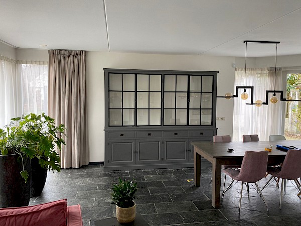 Buffetkast met metalen deuren. De inductriele look door gebruik van 3 metalen deuren is gelukt, de strakke uitstraling blijft aanwezig!