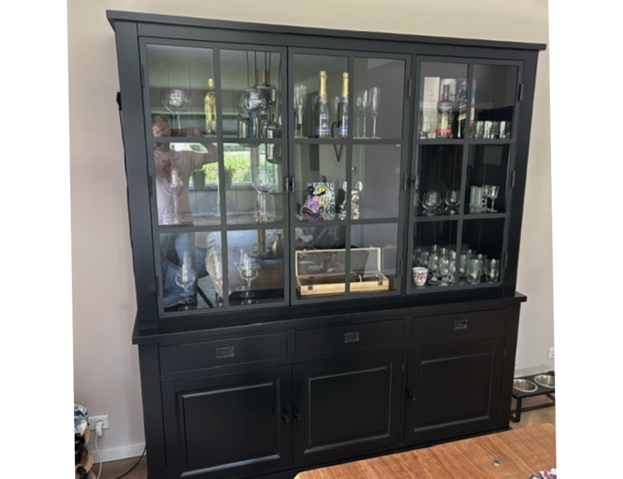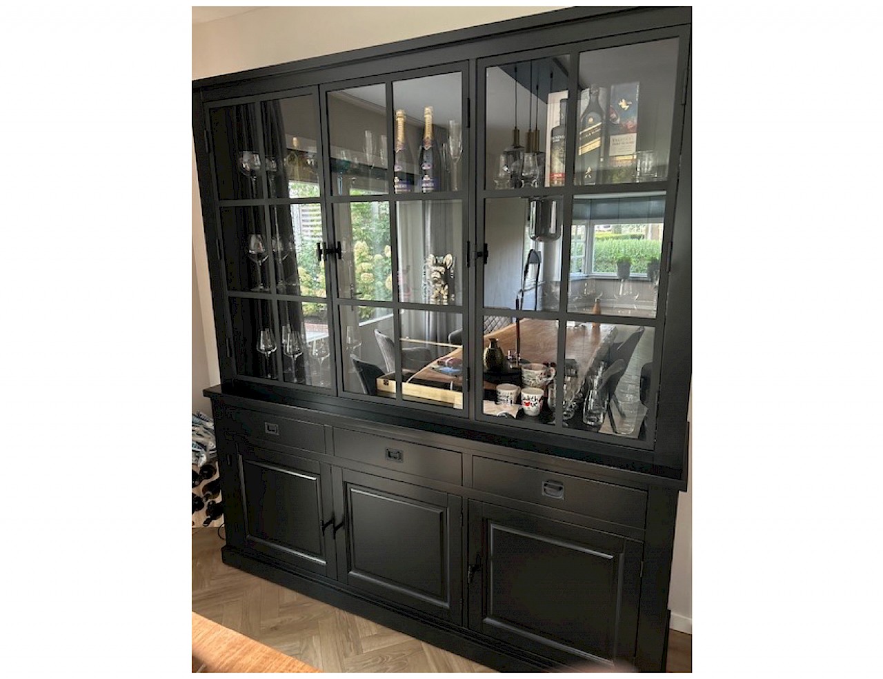 Buffetkast met metalen deuren. De inductriele look door gebruik van 3 metalen deuren is gelukt, de strakke uitstraling blijft aanwezig!