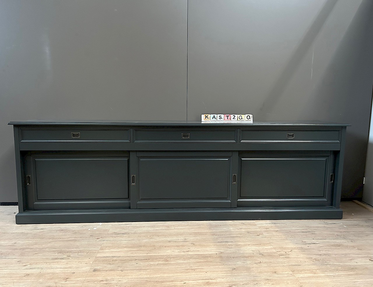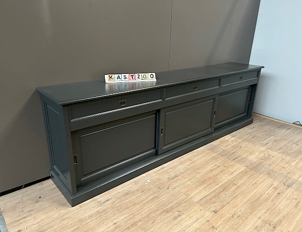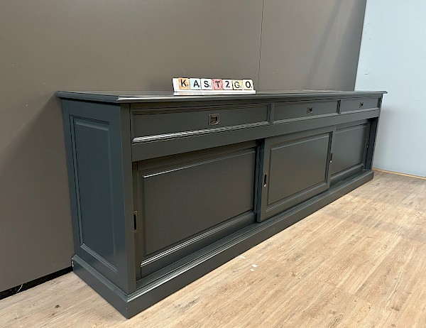 Deze dressoir is heeft een strakke look. Bevat lades, waar soft closing is op geinstaleerd. De deurtjes hangen in metalen rails en gaan erg soepel. Ipv antraciet kan deze dressoir kan ook in alle andere RAL-kleuren gespoten worden. ook in deze lijn in een kast ,tv meubel of salontafel te koop, kijk verder op onze site en vind de juiste combinatie.