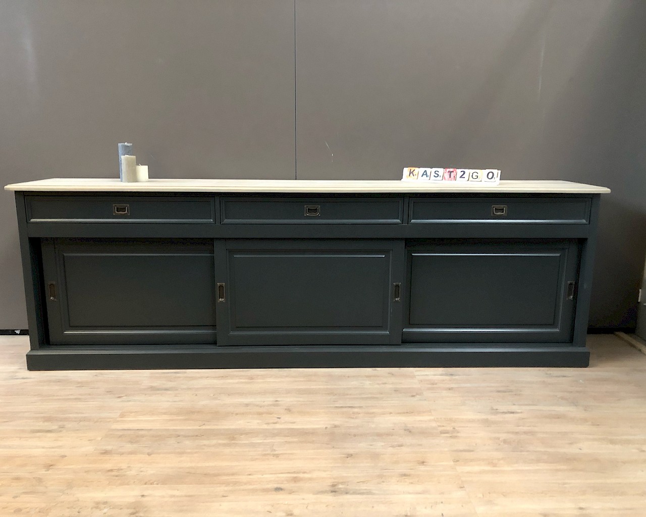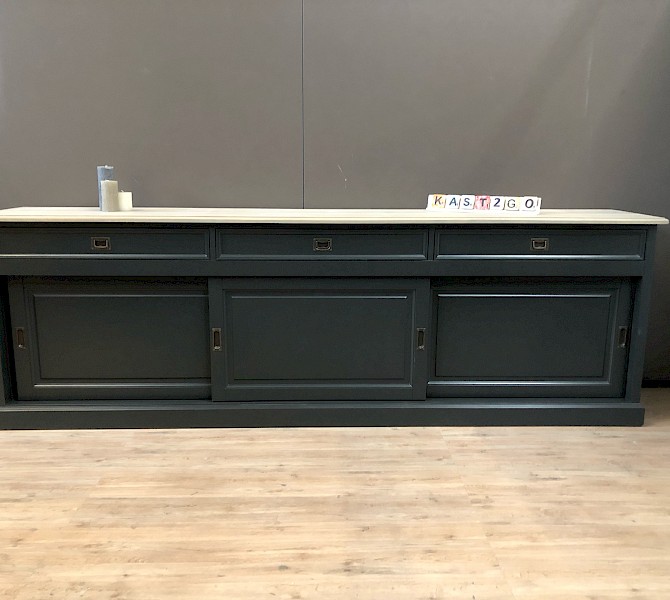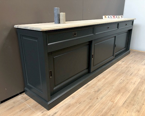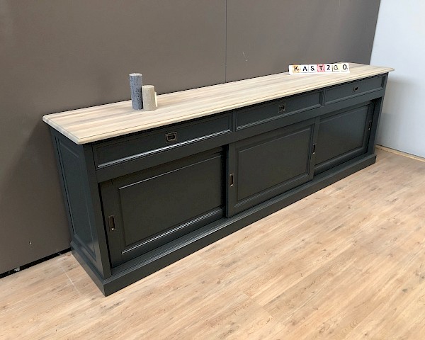 Deze dressoir is heeft een strakke look. Bevat 3 lades, waar soft closing is op geinstaleerd. De deurtjes hangen in metalen rails en gaan erg soepel. Ipv antraciet kan deze dressoir kan ook in alle andere RAL-kleuren gespoten worden. Ook in deze lijn in een kast ,tv meubel of salontafel te koop, kijk verder op onze site en vind de juiste combinatie.
