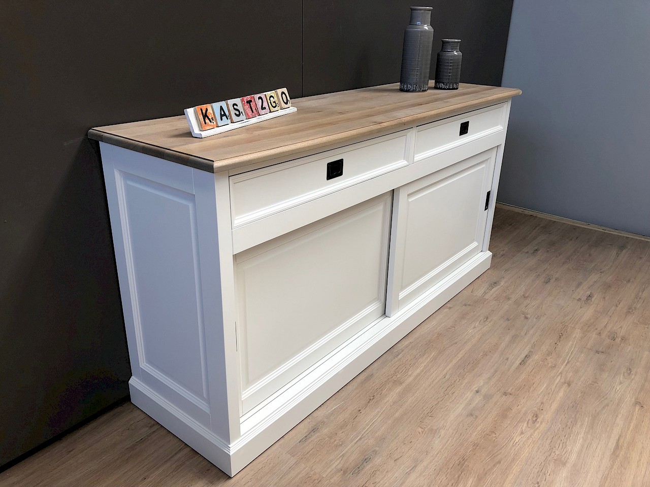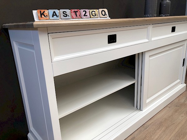 Deze dressoir is heeft een strakke look. Bevat 2 lades, waar soft closing is op geinstaleerd. De deurtjes hangen in metalen rails en gaan erg soepel. Ipv wit kan deze dressoir kan ook in kleur grijs, murano, zwart, verona en antraciet gespoten worden. ook in deze lijn in een kast ,tv meubel of salontafel te koop, kijk verder op onze site en vind de juiste combinatie.