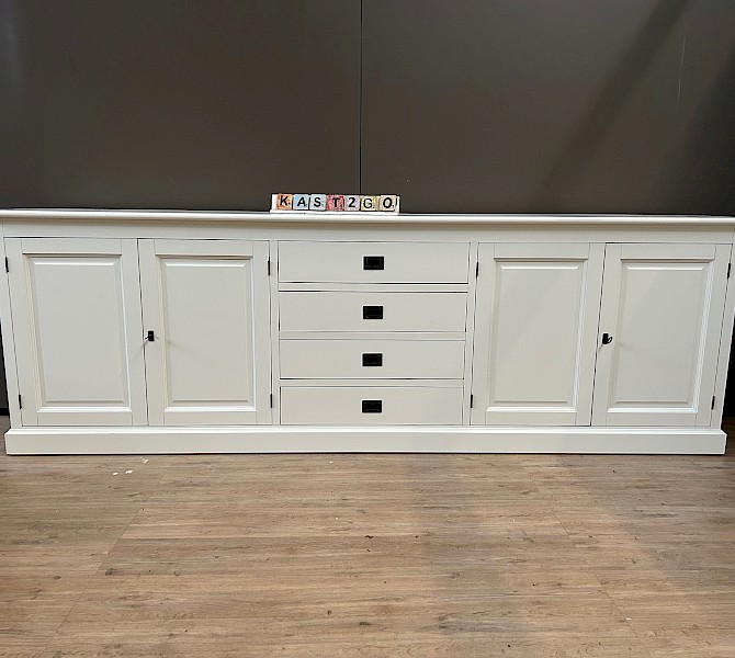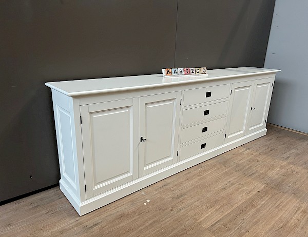 Deze dressoir is 280 breed en heeft een strakke look. Ipv wit kan deze dressoir kan ook in alle andere RAL-kleuren worden gespoten. Ook in deze lijn in een kast ,tv meubel of salontafel te koop, kijk verder op onze site en vind de juiste combinatie.