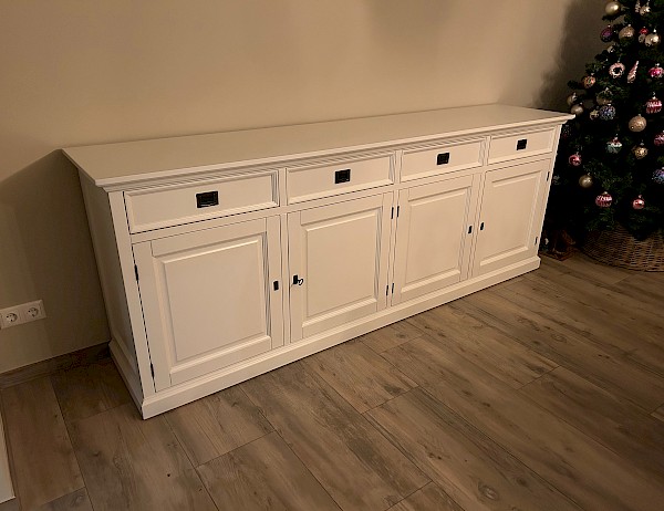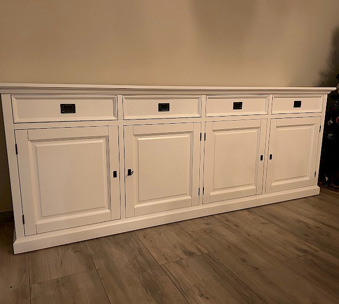 Deze dressoir is heeft een strakke look. Bevat 4 lades, waar softclosing is op geinstaleerd. Deze dressoir kan ik alle RAL-kleuren worden geleverd.
