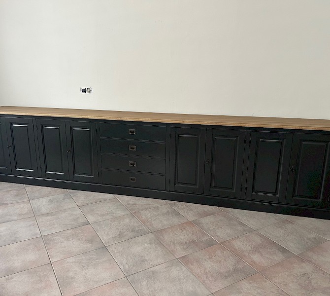 Prachtige dressoir van 400cm breed. Dressoir wordt opgebouwd uit 5 delen, zodat ie ook op een fatsoenlijke wijze naar binnen getransporteerd kan worden.