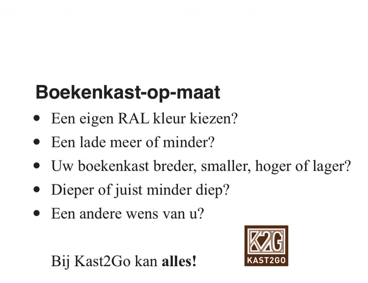 Bent u op zoek naar een Boekenkast, maar wenst u een andere maatvoering? We kunnen het Boekenkast voor u op maat maken: