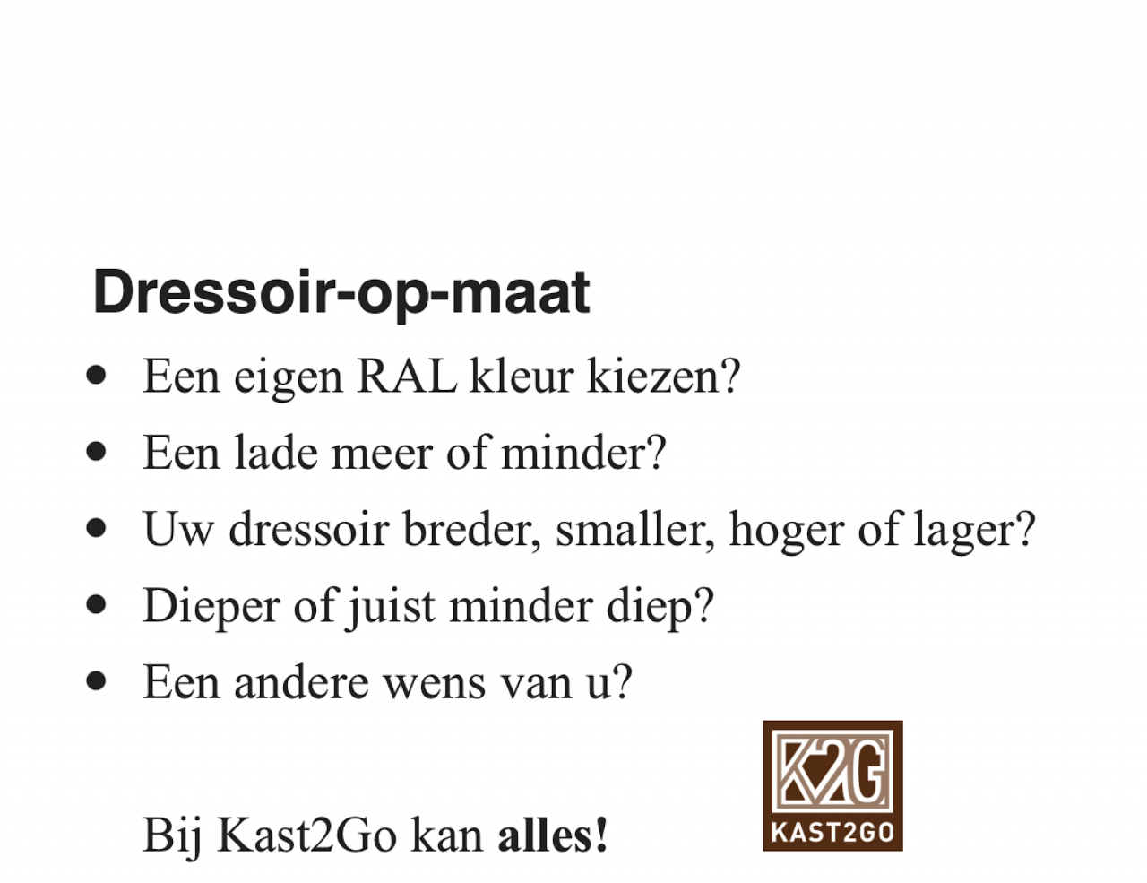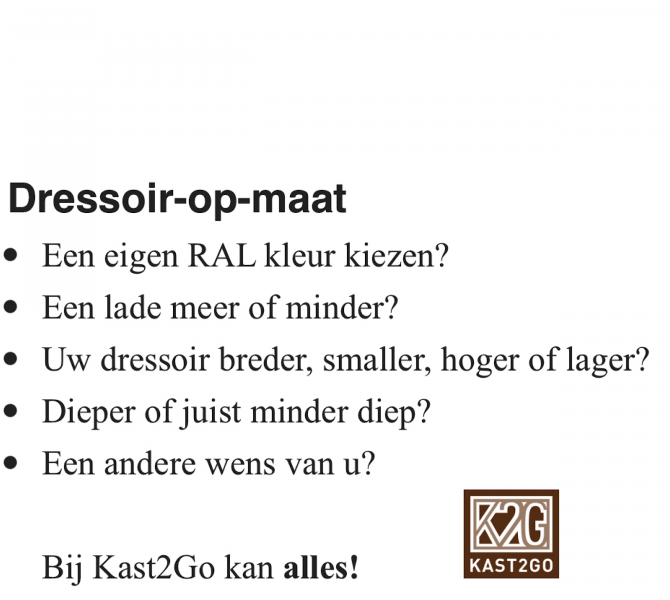 Bent u op zoek naar een dressoir, maar wenst u een andere maatvoering? We kunnen het dressoir voor u op maat maken: