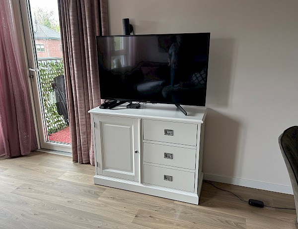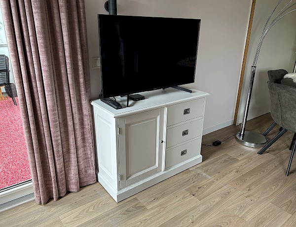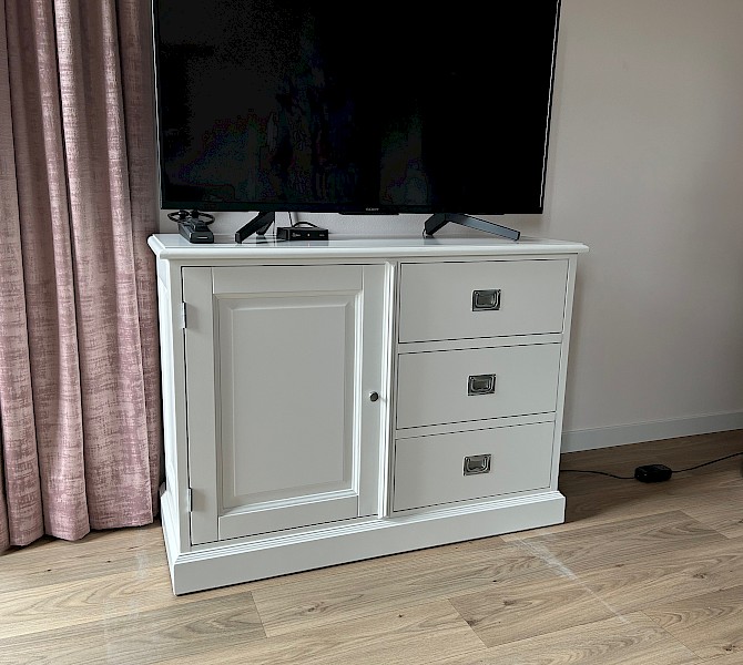 Dit TVmeubel is op speciaal verzoek van een klant gefabriceerd, passend bij haar buffetkast Bastiaan