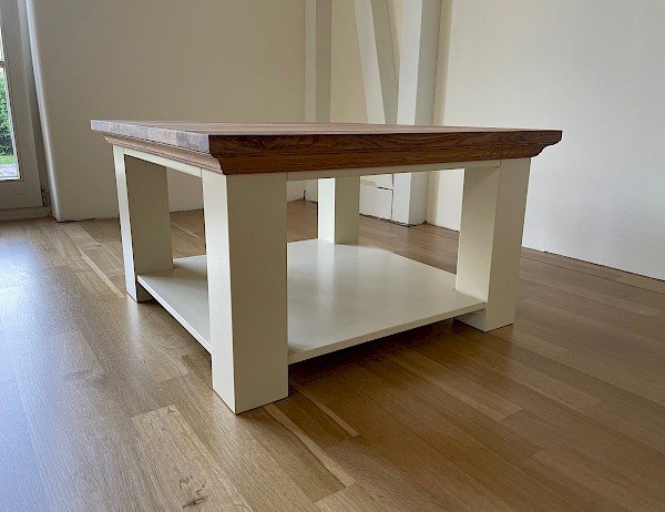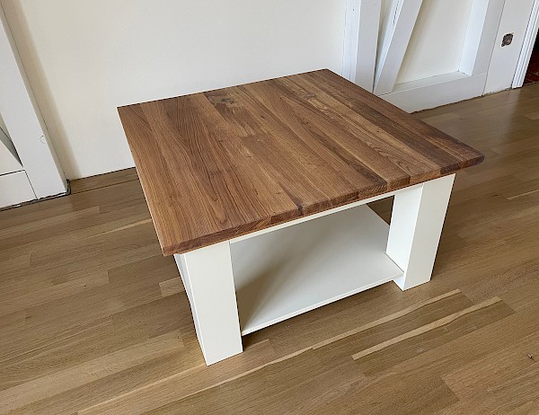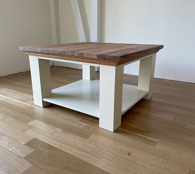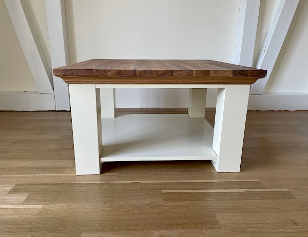 Deze salontafel is in al;le RAL-kleuren leverbaar, met of zonder eiken top!