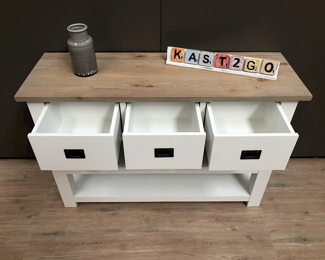 Leuke strakke sidetable, in de maat van 120cm breed. Maar ook verkrijgbaar in 100-140-160-180 of 200cm breed.