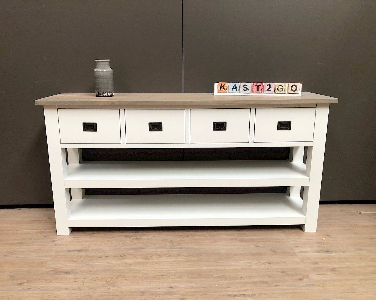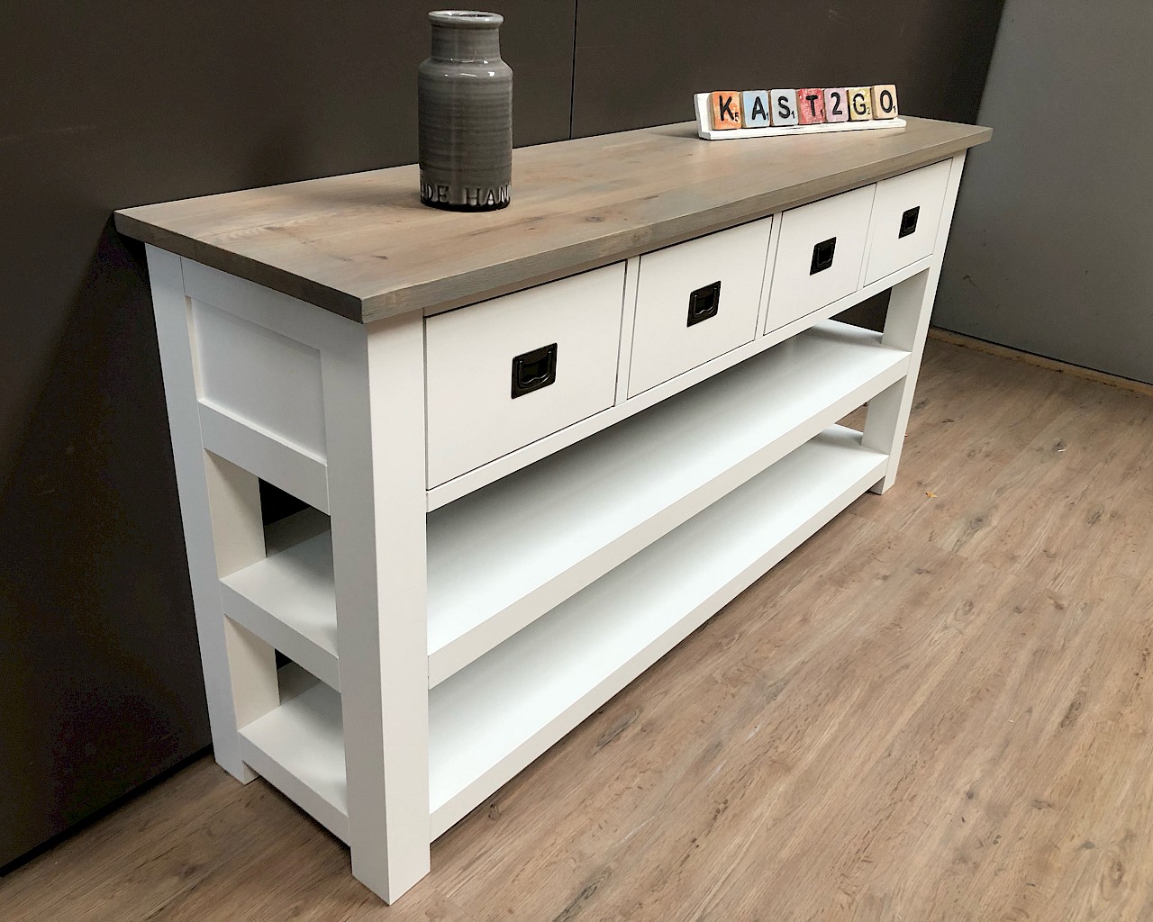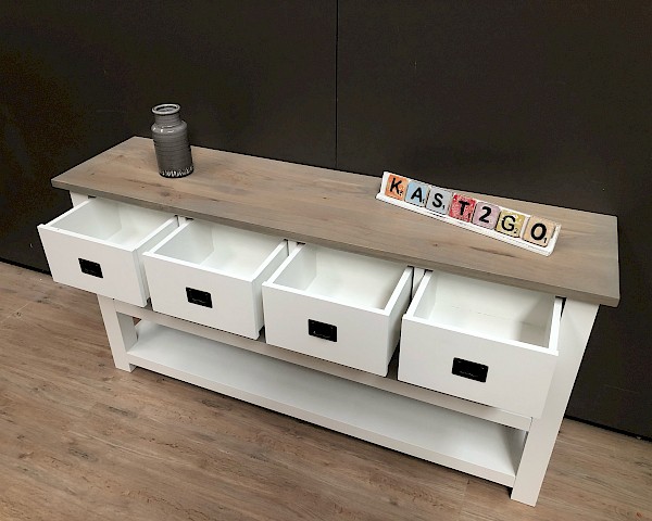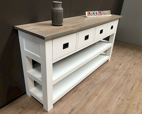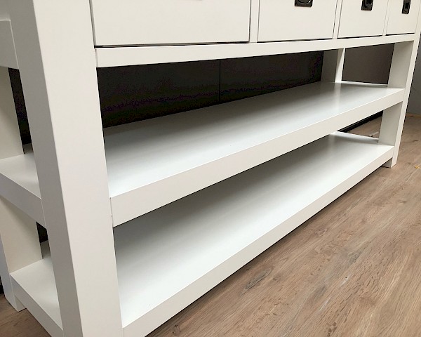 Leuke strakke sidetable, in de maat van 160cm breed. Maar ook verkrijgbaar in 100-120-140-180 of 200cm breed.
